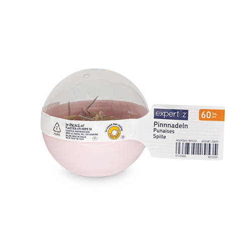 Assortiment d’accessoires de bureau, punaises, jaune/rose