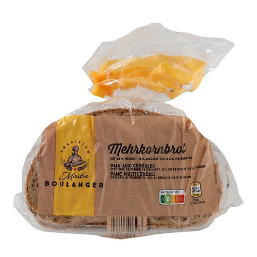 Origine: Allemagne farine de blé, eau, pâte au levain naturel (farine de seigle, eau), graines de tournesol, flocons d’avoine, graines de lin, farine de seigle complète, sel, levure, correcteur d’acidité: acétate de sodium. Indications sur les allergènes: Peut contenir des traces de soja, de moutarde, de sésame et de lupins.