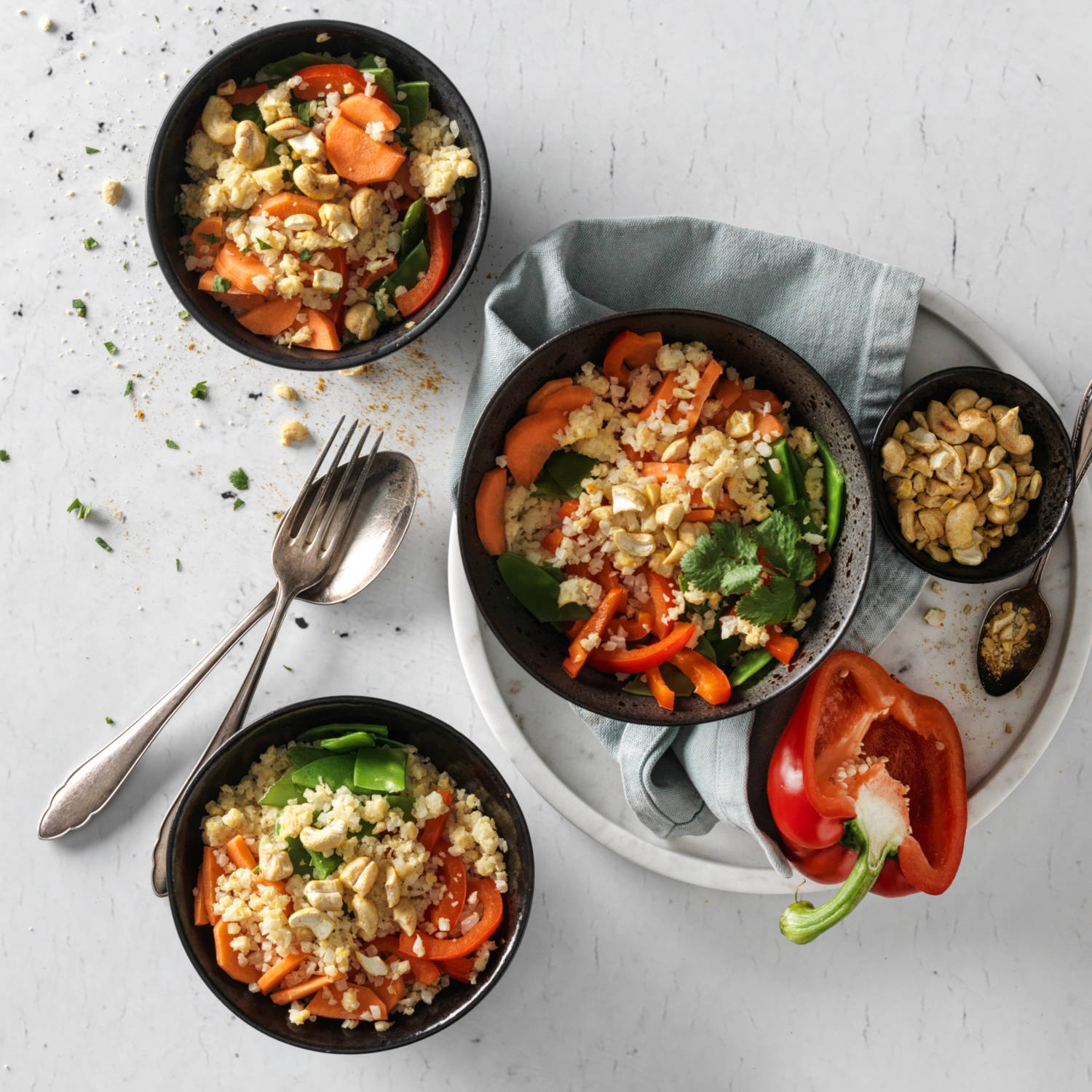 Riz au chou-fleur frit aux légumes et à l'œuf