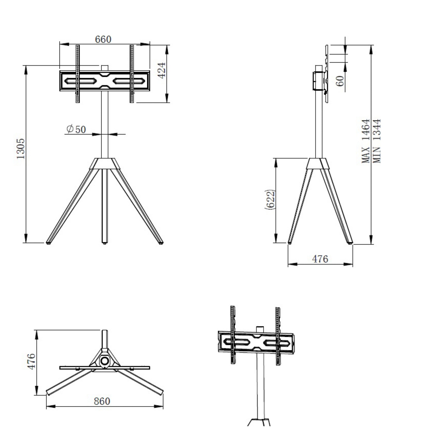 Utilizzate il supporto TV Tripod di One For All per montare a terra televisori di dimensioni comprese tra 32 e 65 pollici. Il supporto è stabile, pratico e colpisce per il suo design elegante.