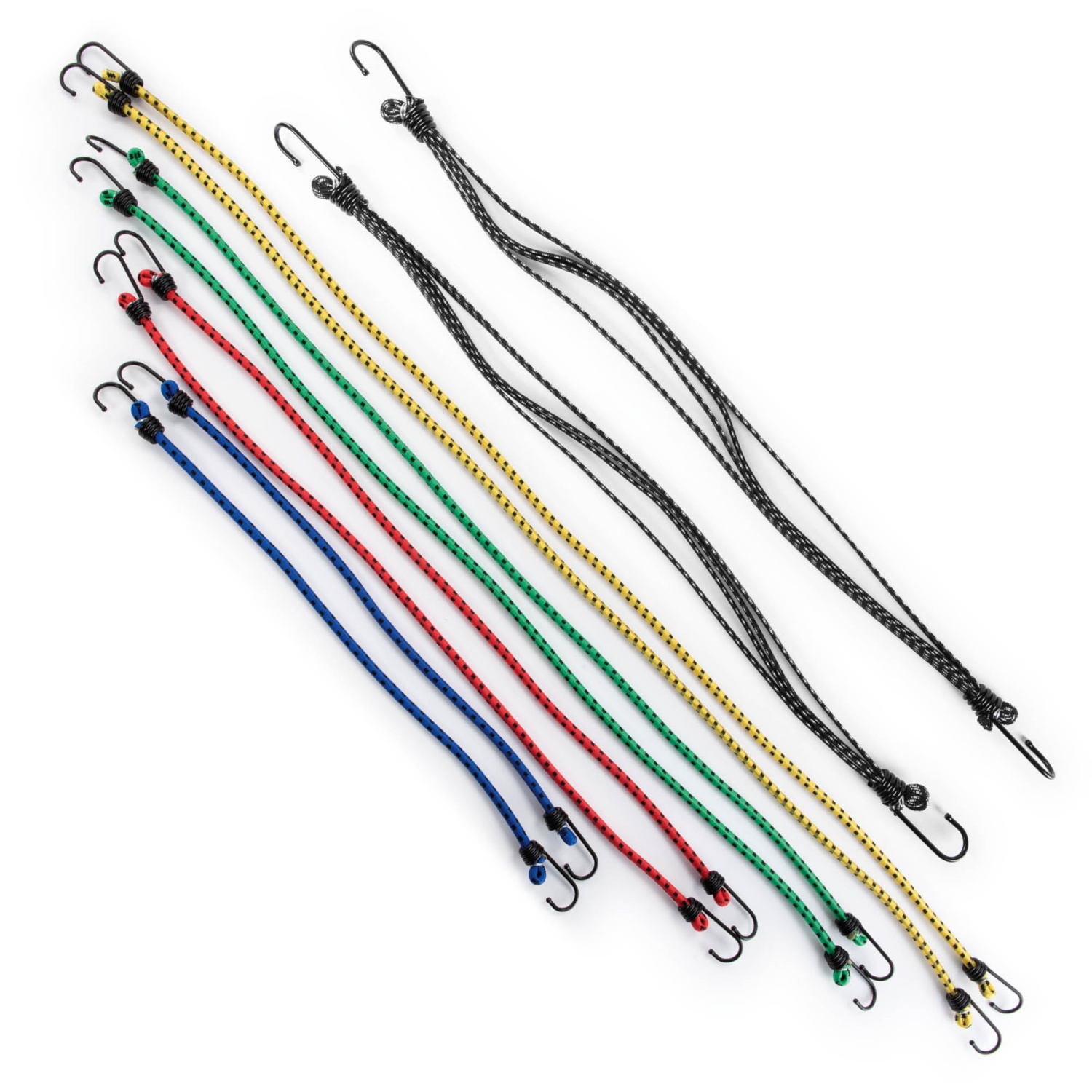 - set con 8 fermapacchi stabili e flessibili, lunghezza complessiva senza ganci: 2 x 40 cm, 2 x 60 cm, 2 x 80 cm, 2 x 100 cm, oppure