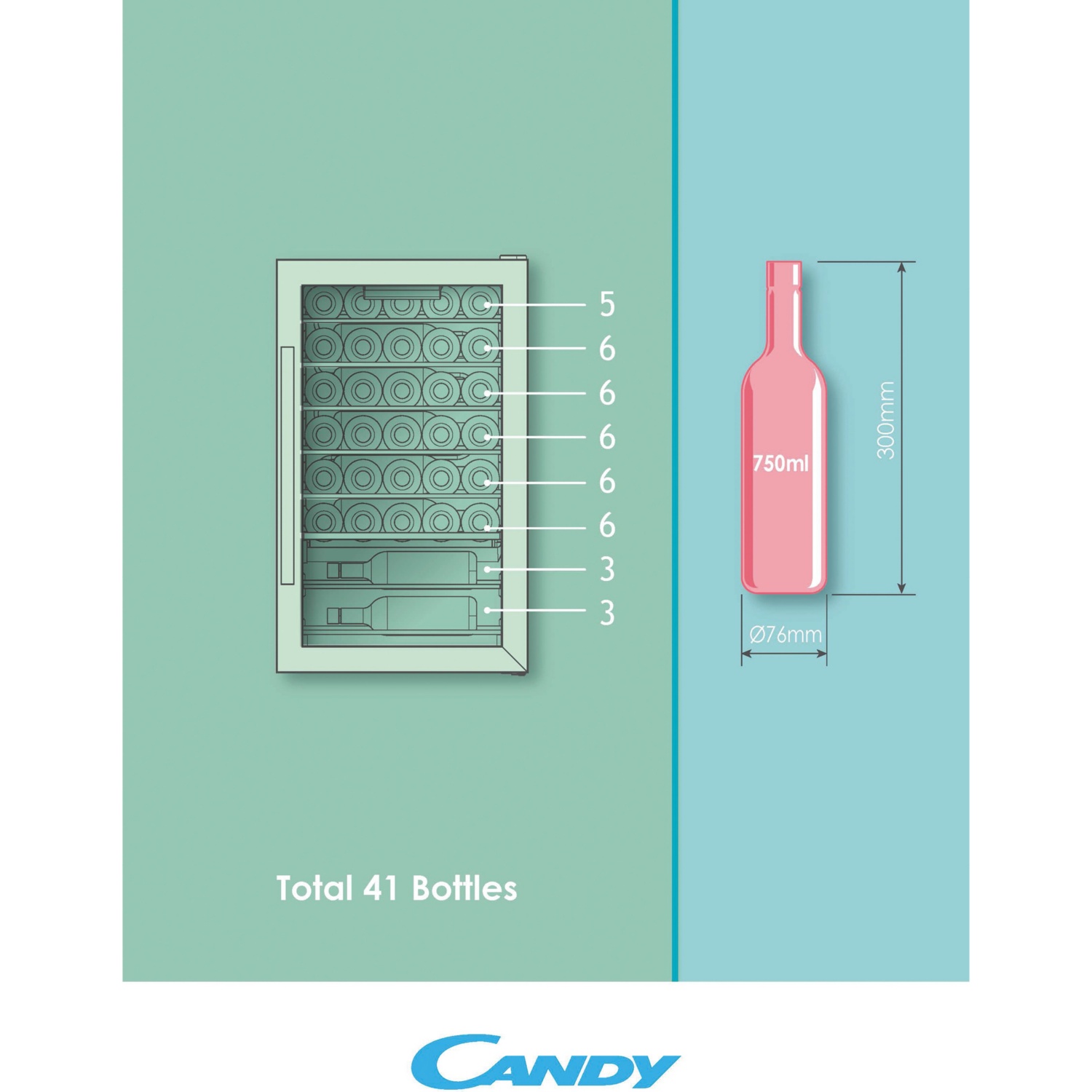 - Capacità: 41 bottiglie (0,75 litro)