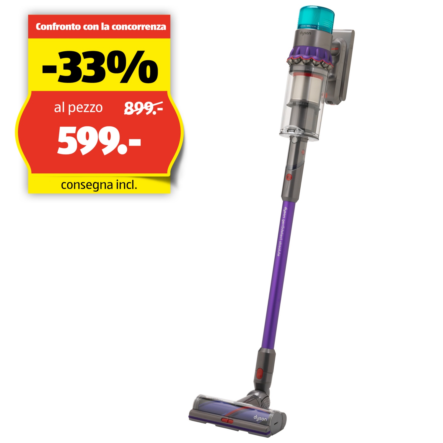 La Dyson Gen5detect è l’aspirapolvere HEPA senza fili più potente. È dotata di un filtro HEPA per la nostra pulizia più profonda e igienica. È stato sviluppato con la potenza, intelligenza, versatilità e durata per pulire bene tutta la casa. Ottimizza la potenza di aspirazione in modo intelligente a seconda del tipo di pavimento e dello sporco assorbito. Il display LCD indica quando una zona deve essere pulita ancora e quando si può proseguire. La testa di aspirazione Fluffy Optic rende visibile sui pavimenti duri la polvere invisibile. La testina di pulizia anti groviglio Digital Motorbar pulisce tappeti e pavimenti duri a fondo e senza aggrovigliarsi. L’aspirapolvere versatile senza fili è convertibile con un solo clic in un aspiratore manuale, per cui puoi pulire in alto, in basso e ovunque nel mezzo. Il tubo di aspirazione è rimovibile per mantenere un apparecchio pronto all’uso per la pulizia in continuo.