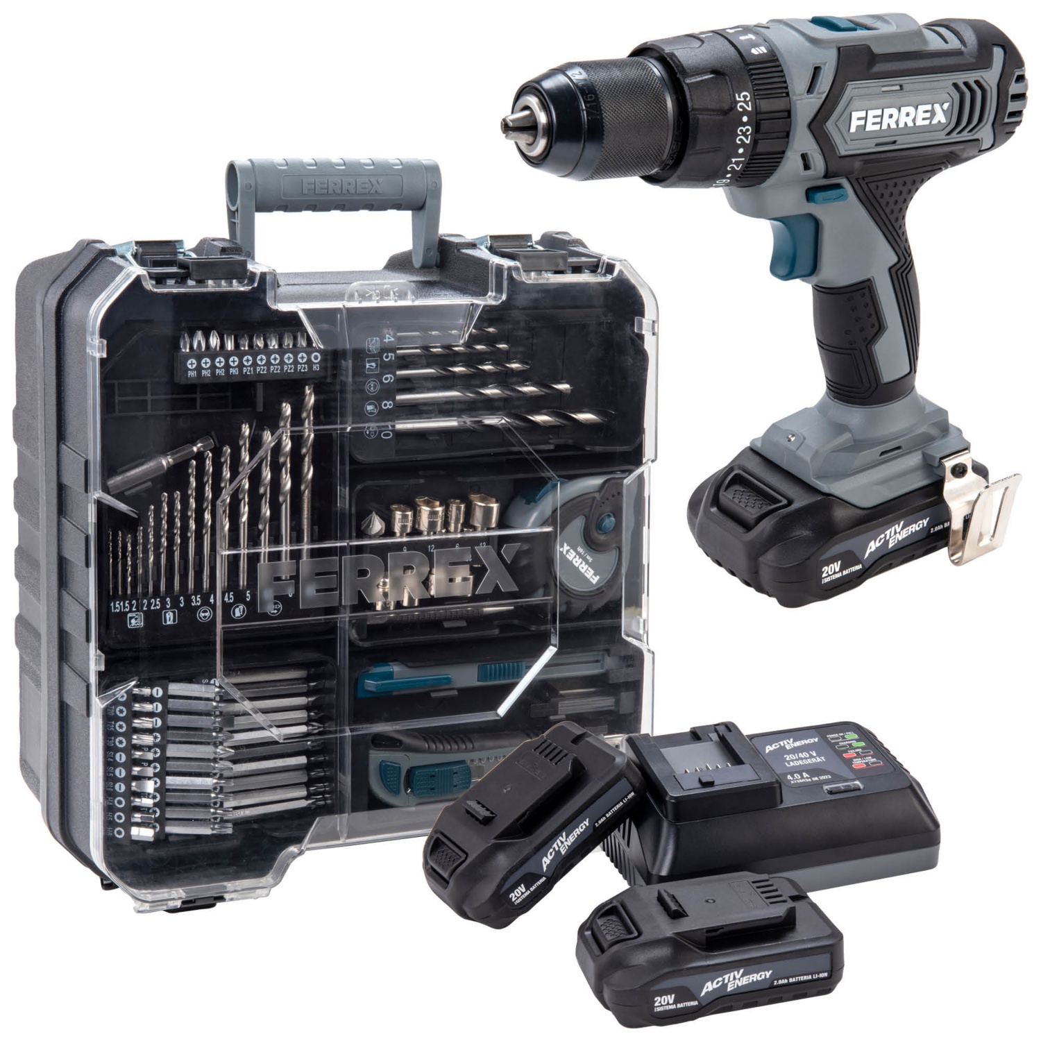 include 2 batterie Activ Energy da 20 V e 1 caricabatterie Activ Energy