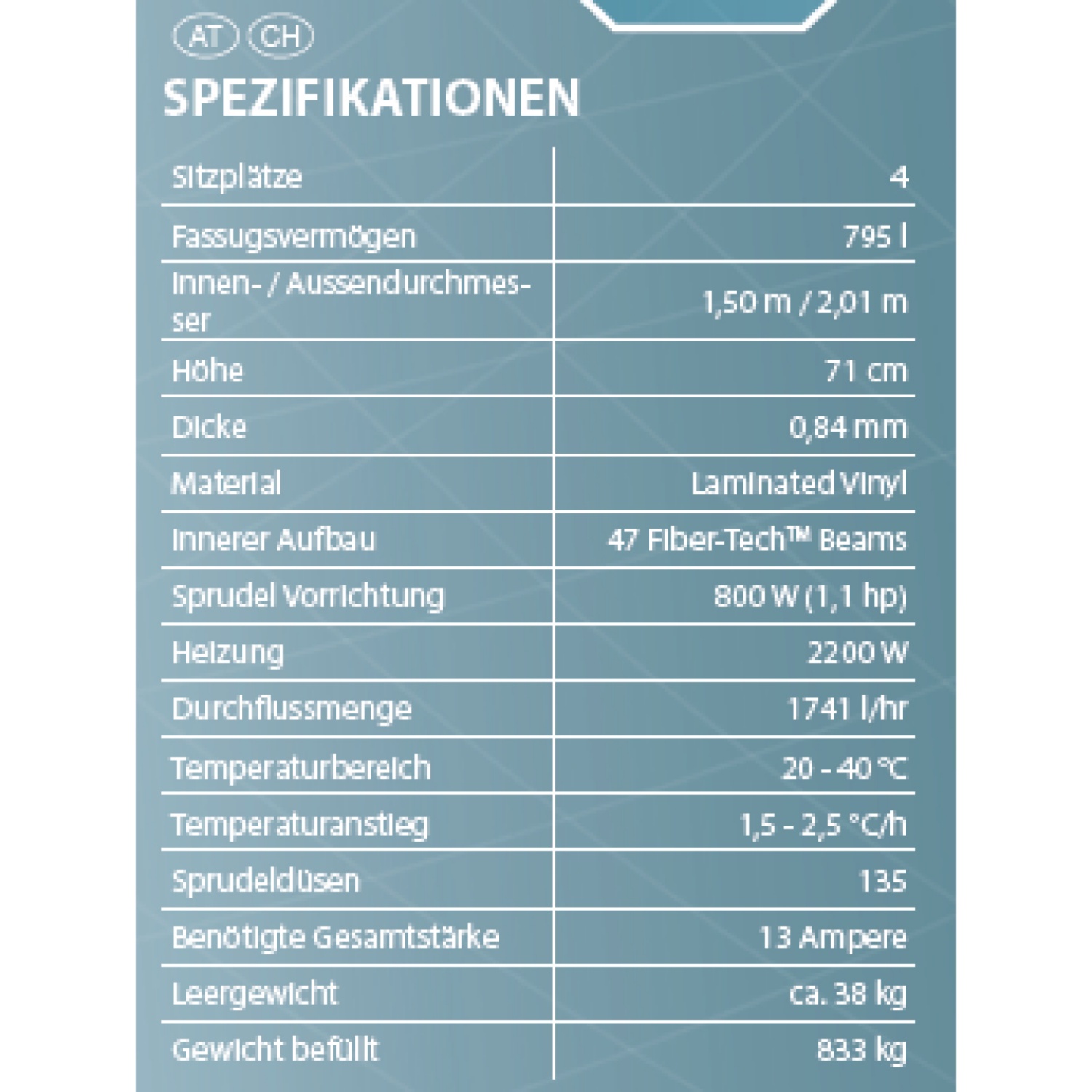 - Incl. 2 poggiatesta, custodia protettiva, dosatore galleggiante e fondo isolante, 2 cartucce per il filtro, strisce di test e una copertura isolante richiudibile