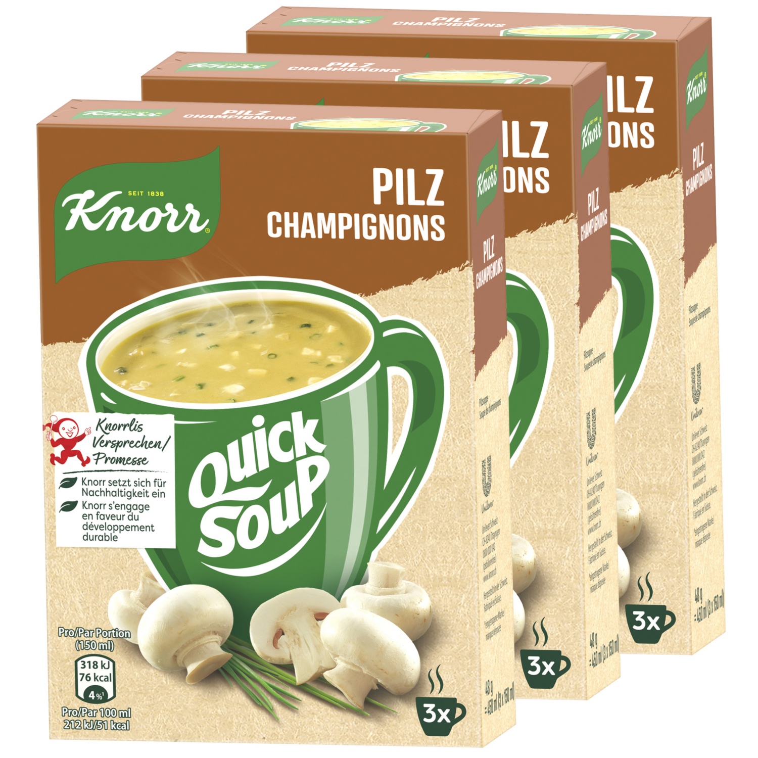 KNORR Zuppa veloce in confezione da tre, funghi