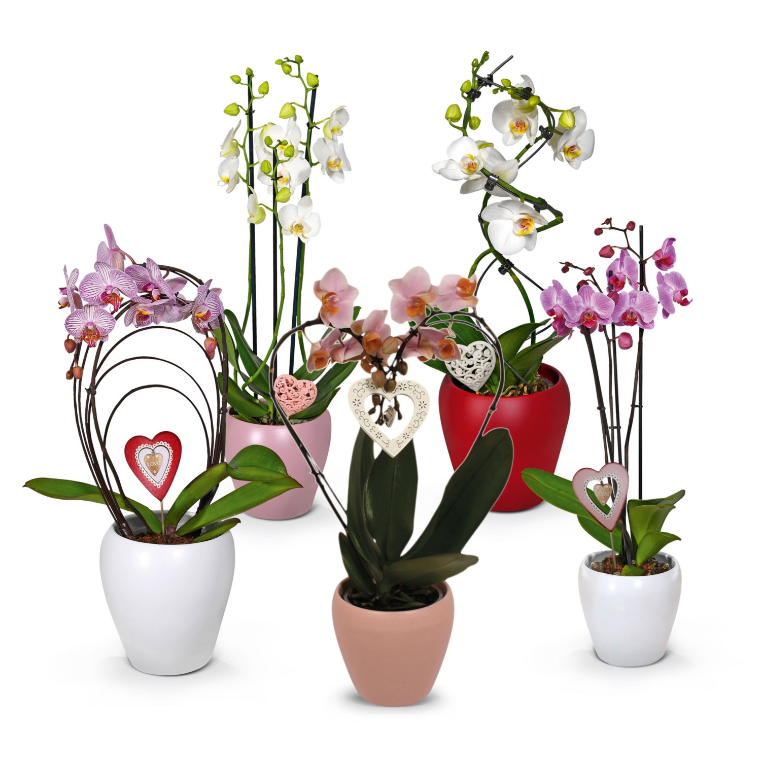 in vaso di ceramica di alta qualità da 14 cm, varie forme speciali come 3 steli, Cascade, a forma di cuore, Hurricane o Rainbow, incl. decorazione a forma a cuore