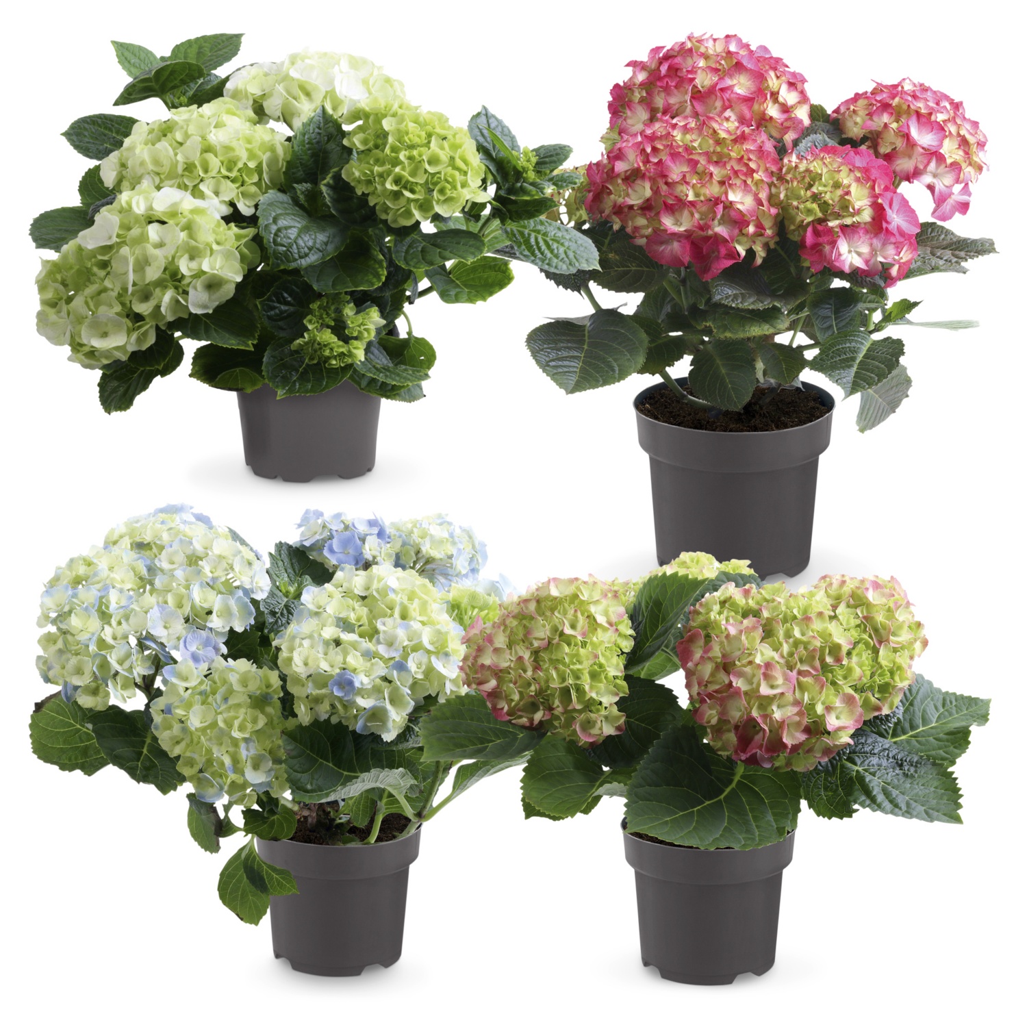 - in diversi colori di fioritura come bianco, rosa, rosso, o blu/lilla
