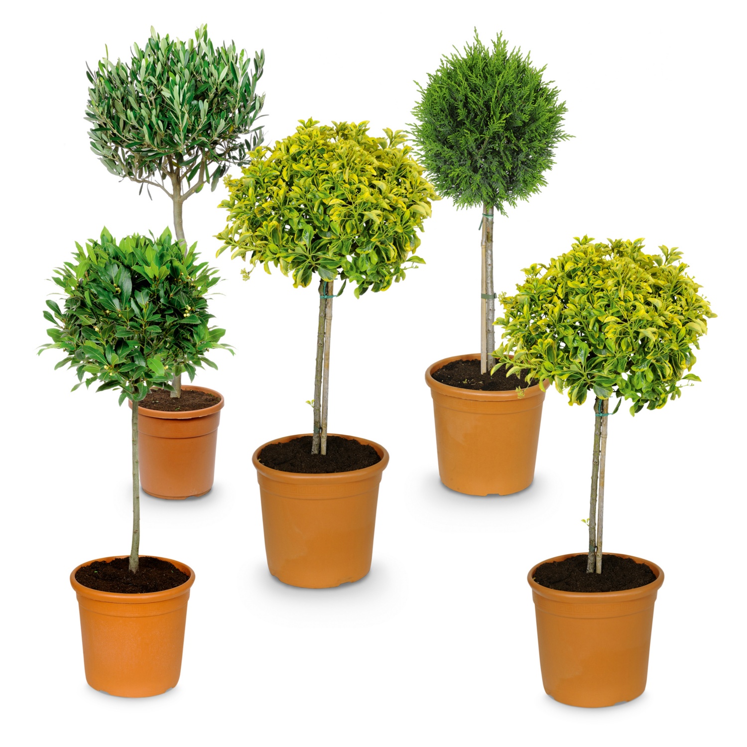 In vaso da 24 cm, altezza incl. vaso: min. 80 cm, diverse varietà come alloro, ulivo o cipresso