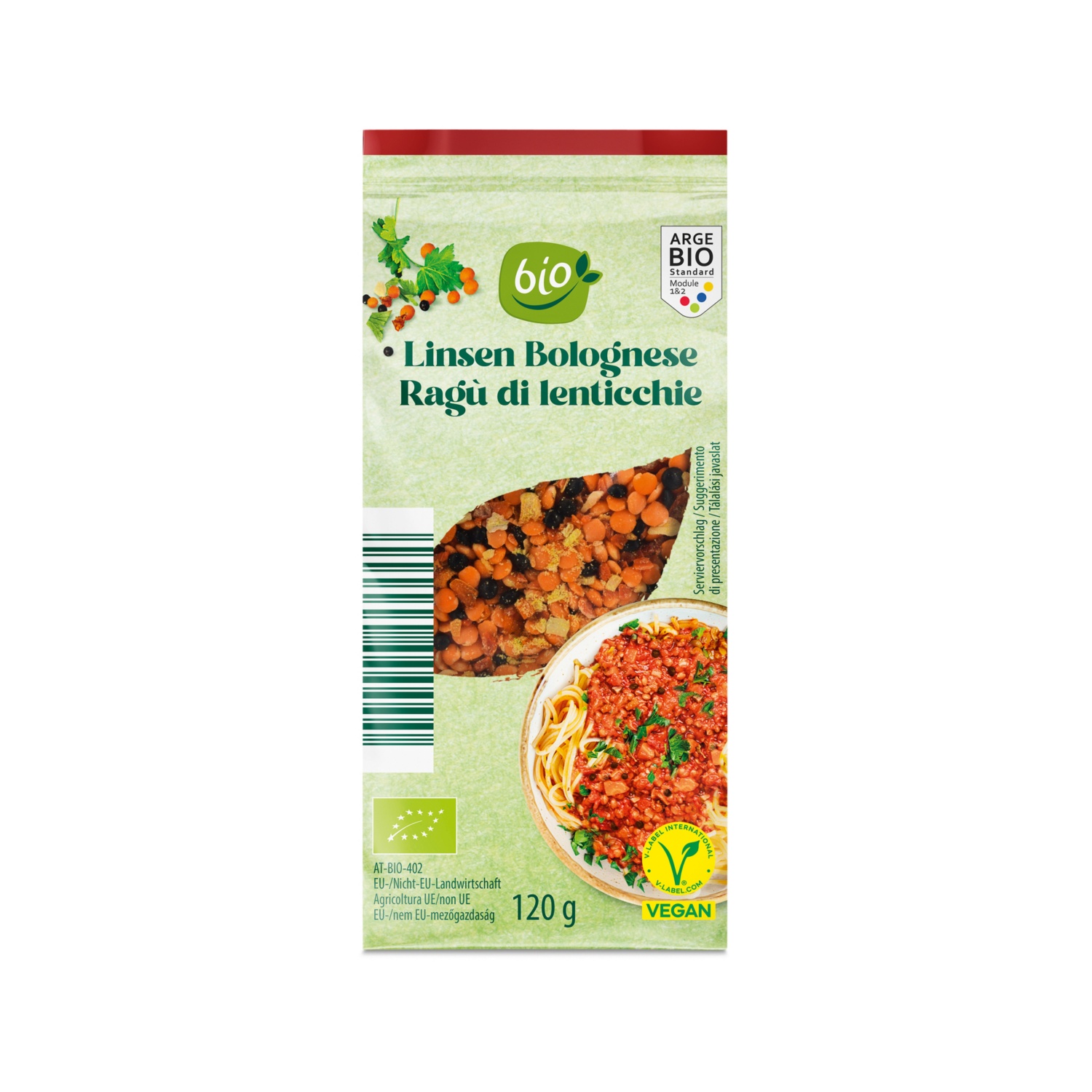 Piatti vegani di lenticchie BIO, bolognese