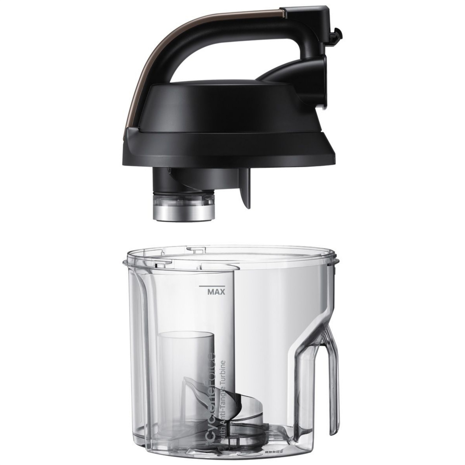 Il contenitore della polvere senza sacco dell’aspirapolvere Samsung Motion Sync è rimuovibile e svuotabile facilmente. Estrai il contenitore della polvere premendo un pulsante, ruota il coperchio, rovescia il contenuto nel bidone dell’immondizia e reinserisci il contenitore della polvere. Anche il filtro è facilmente rimovibile e lavabile con l’acqua.
