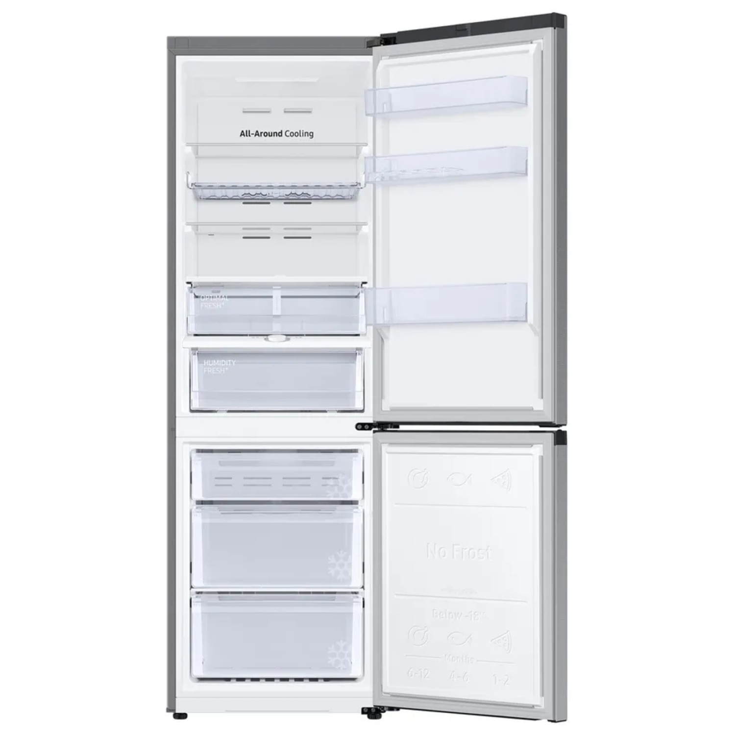 Più spazio all'interno, stesse dimensioni all'esterno: SpaceMax offre fino al 30% in più di spazio utilizzabile rispetto ai modelli Samsung comparabili con le stesse dimensioni esterne. Questo vantaggio in termini di spazio è ottenuto grazie a pareti dell’apparecchio particolarmente sottili con un forte effetto isolante. In questo modo si ottiene più spazio all'interno senza aumentare le dimensioni del frigorifero o ridurne l'efficienza energetica.