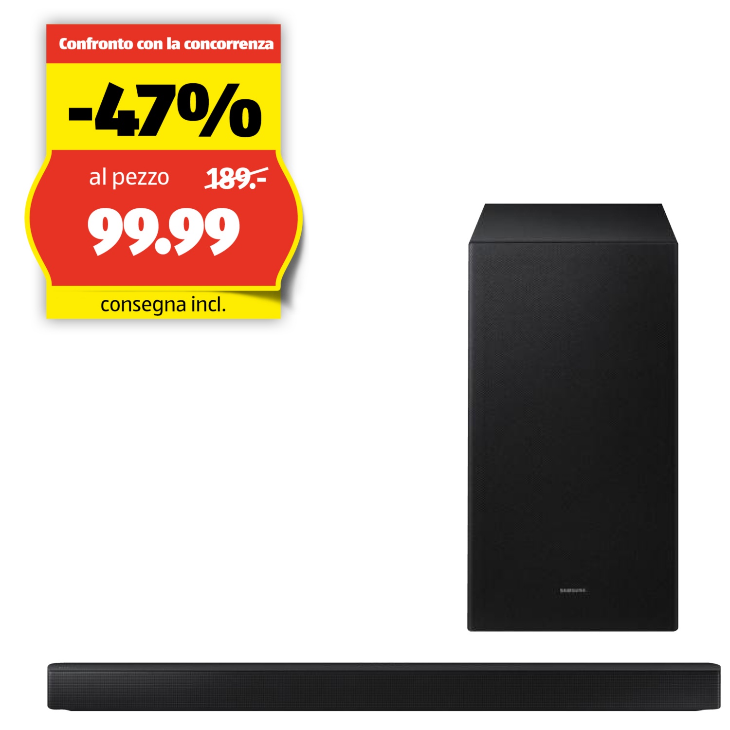 - Subwoofer: senza fili, può essere posizionato separatamente