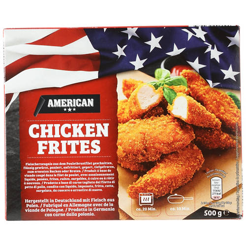 Pollo fritto da filetto di pollo fritto tagliato, speziato e impanato.