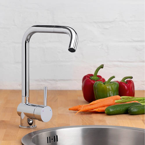 • Miscelatore da cucina con braccio alto in cromo oppure nero