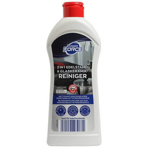 POWER FORCE Detergente 2 in 1 per acciaio inossidabile e vetro, 300 ml