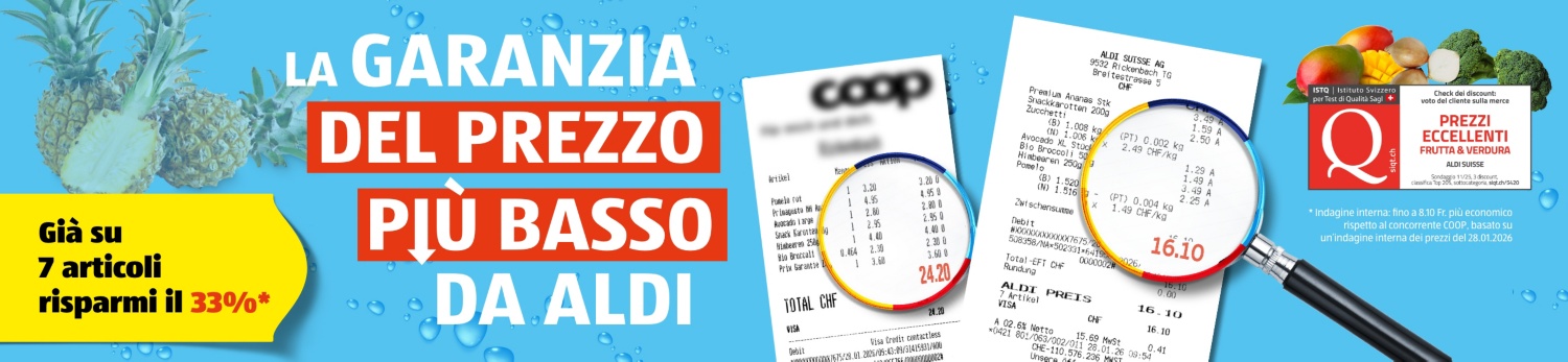 Non perdetevi i nostri angolo freschezza! Tutte le attuali offerte e promozioni ALDI SUISSE da giovedì a mercoledì – solo per un breve periodo – e fino a esaurimento scorte.